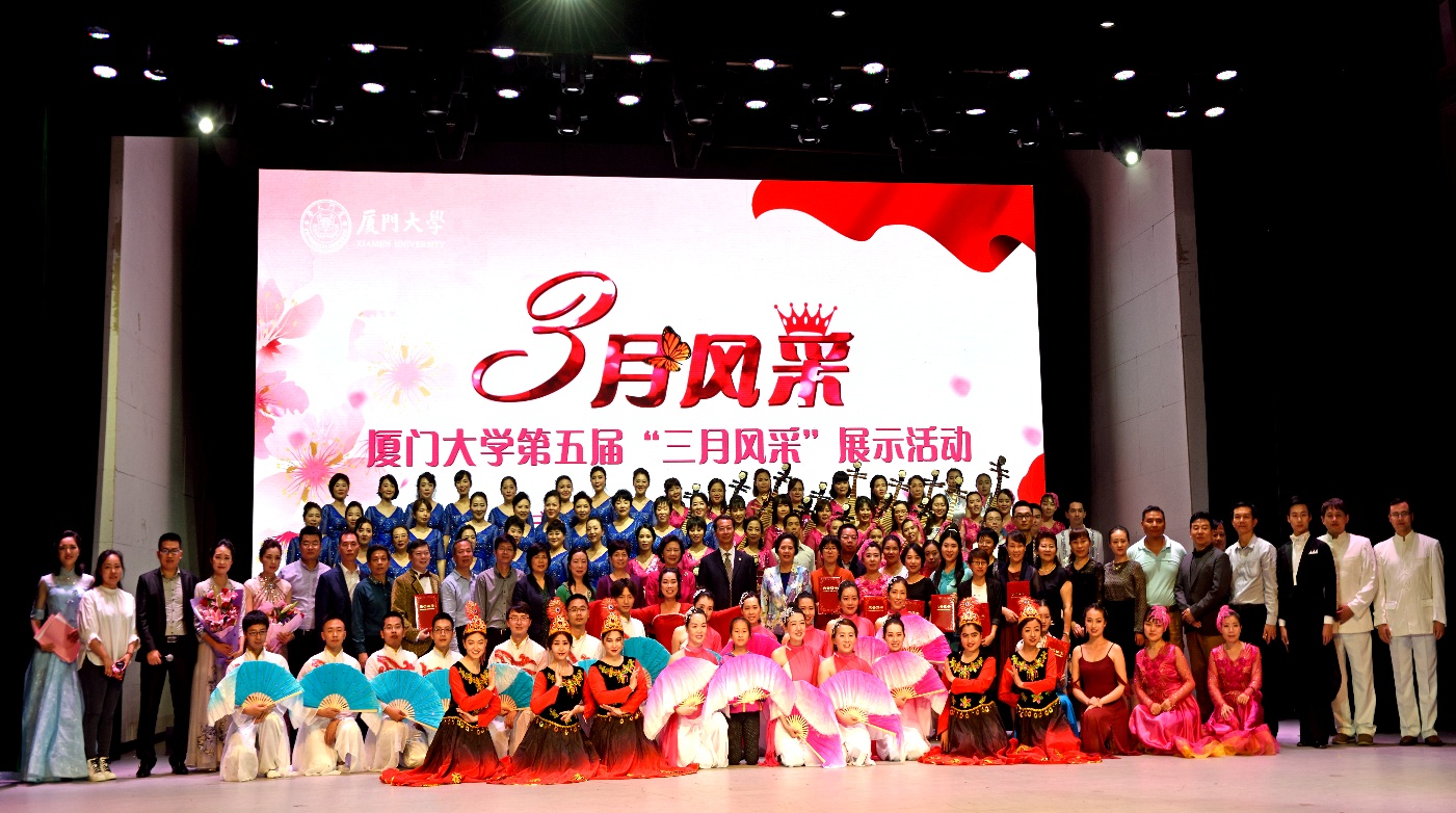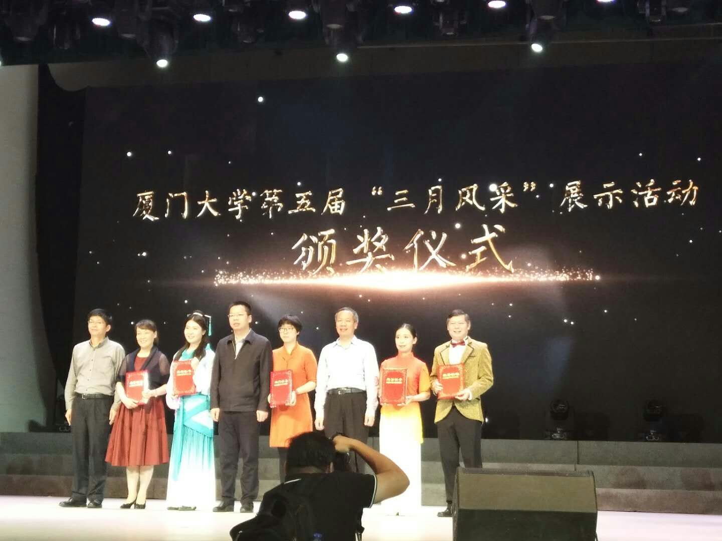 4月20晚,厦门大学“三八”红旗手颁奖暨第五届“三月风采”展示活动在建南大会堂拉开帷幕。来自厦大三个校区的代表齐聚一堂,进行了“三八”红旗手的颁奖仪式和精彩的节目展演。我院参演节目以独特的魅力和创意获得了107.36的高分,荣获三等奖,这也是我院首次参加“三月风采”,就获得的如此殊荣,受到校领导和工会的高度赞扬。