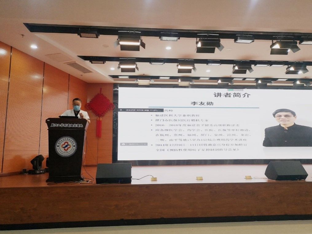 本次培训邀请福建医科大学兼职教授、厦门市医保局医疗稽核专家李友勋主任担任讲座嘉宾。李友勋主任从麻精药品相关法律与规范、疼痛药物治疗原则、术后疼痛治疗五项基本原则和用药监管等四个方面入手,结合工作实际和生动案例,深入浅出地讲解了麻精药品使用与管理中需要注意的问题。