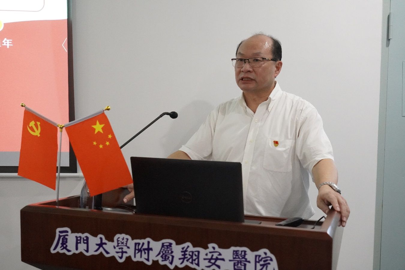 张国君以《学习卫生事业发展历史,推动翔安医院高质量发展》为题,围绕“中华人民共和国成立以来卫生事业发展概况、医院建设发展的初心与使命以及共产党员的责任和担当”等方面展开,党课主题鲜明、内容丰富,具有较强的理论性、针对性和指导性。
