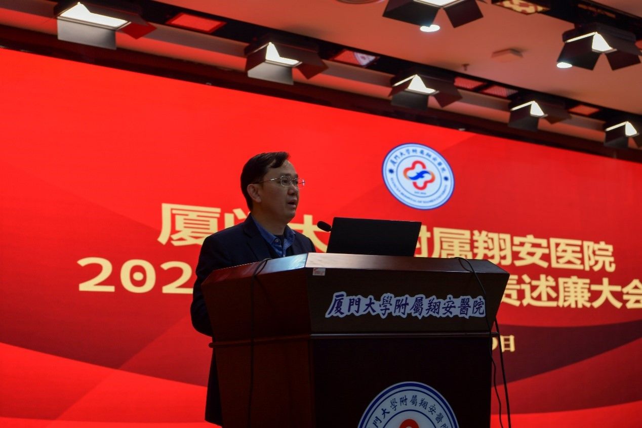 执行院长何伟玲对各部门、科室2022年度的工作予以充分肯定的同时,也客观地分析了目前存在的问题和不足,对做好下阶段工作提出要求。他表示,党的二十大强调要建设一支政治过硬、适应新时代要求、具备领导现代化建设能力的干部队伍。每一年的述职述责述廉大会,是我们加强领导班子和中层管理干部队伍建设的重要步骤和举措,对于打造高水平的医院管理队伍,推动医院高质量发展具有重要的意义。