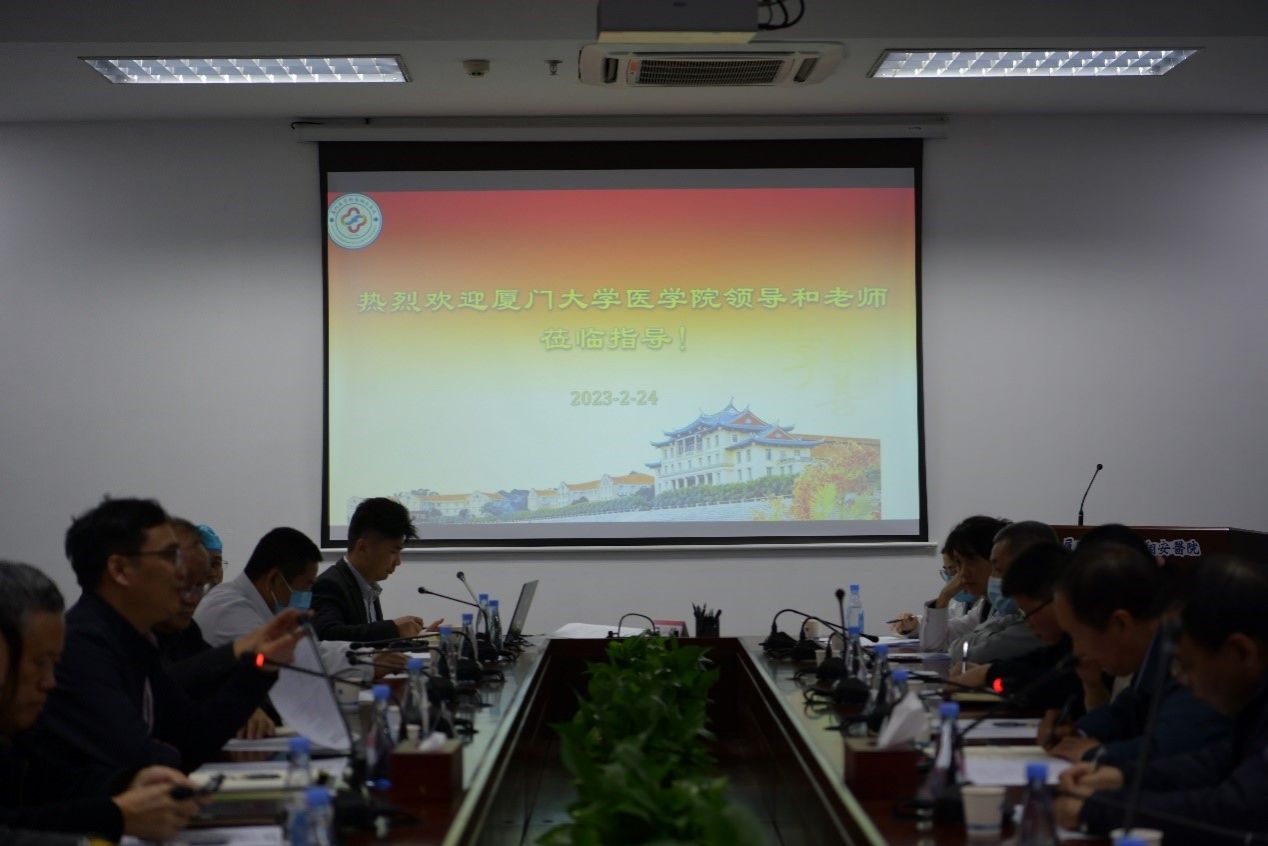 2月24日下午,厦门大学医学院副院长薛茂强、副院长钱林超等学院领导及教学相关部门负责同志一行6人来我院就教学相关工作开展调研。我院党委书记左正宏、副院长程继东、科教部主任余丹及教研室代表、教师代表、研究生导师代表、科教部教学干事参加座谈。会议由副院长程继东主持。