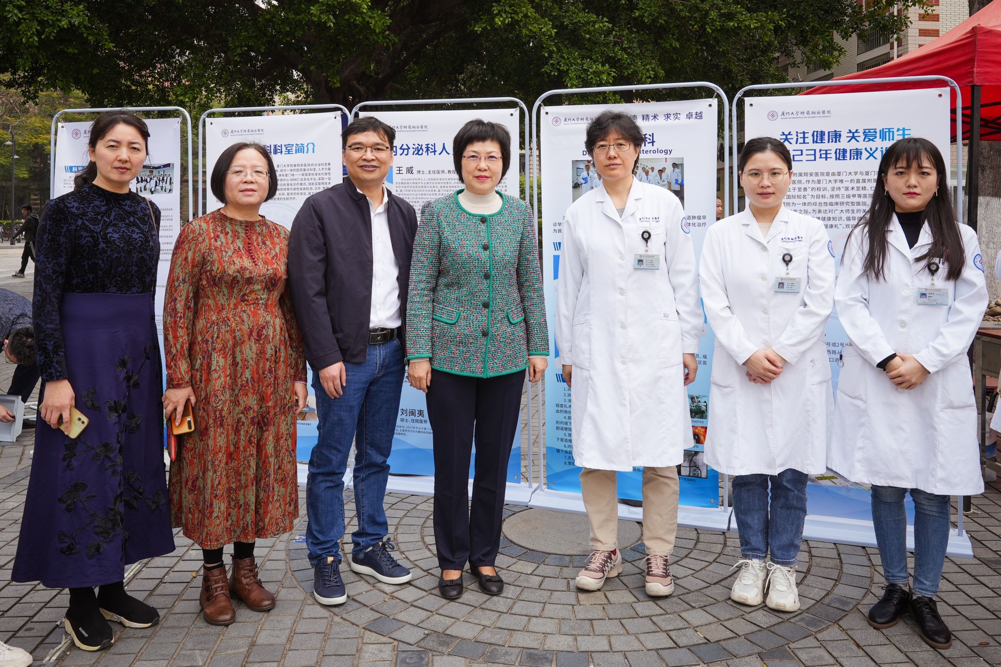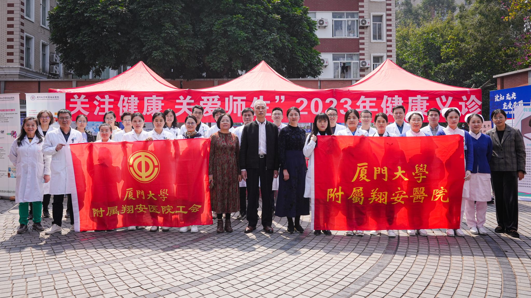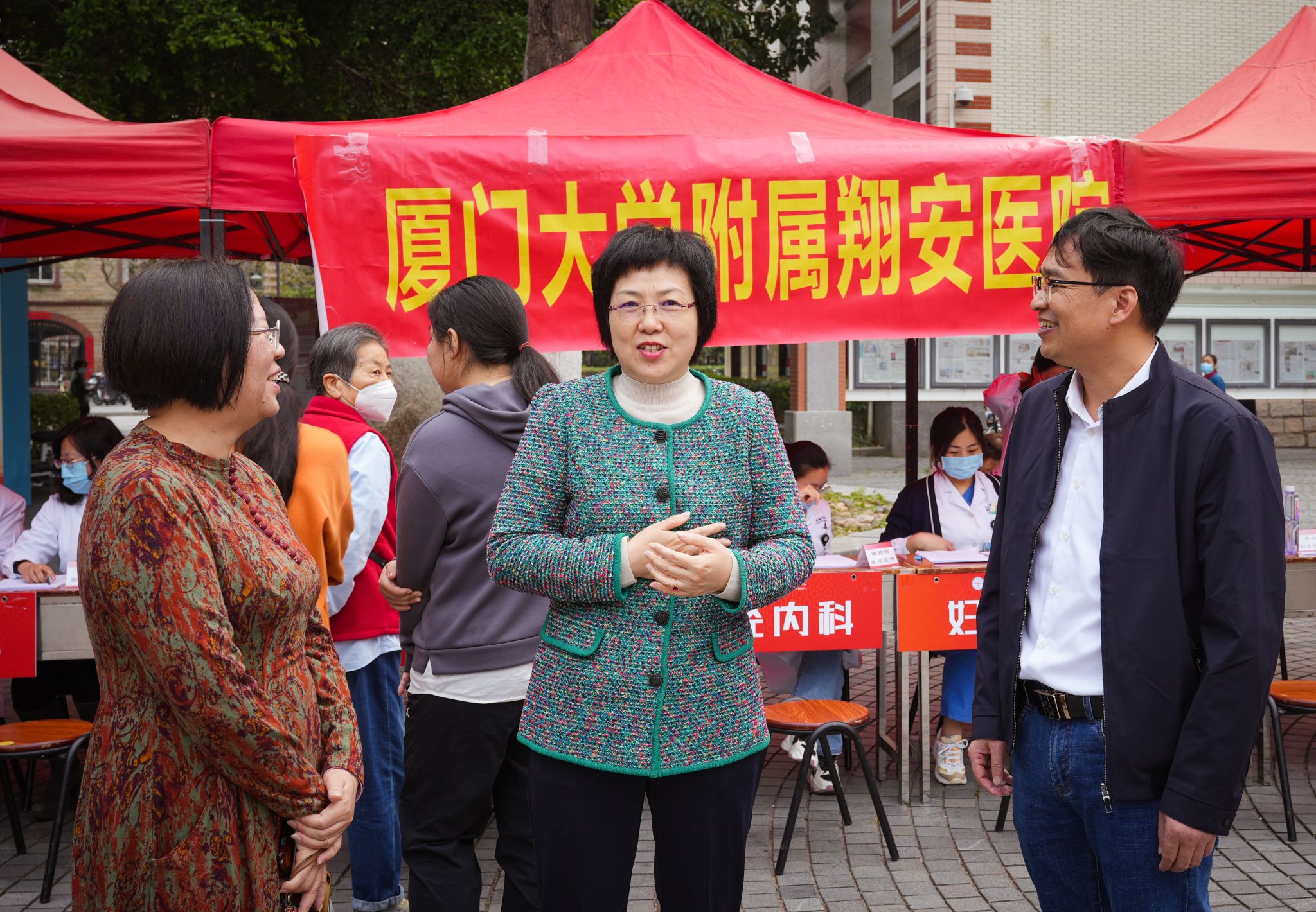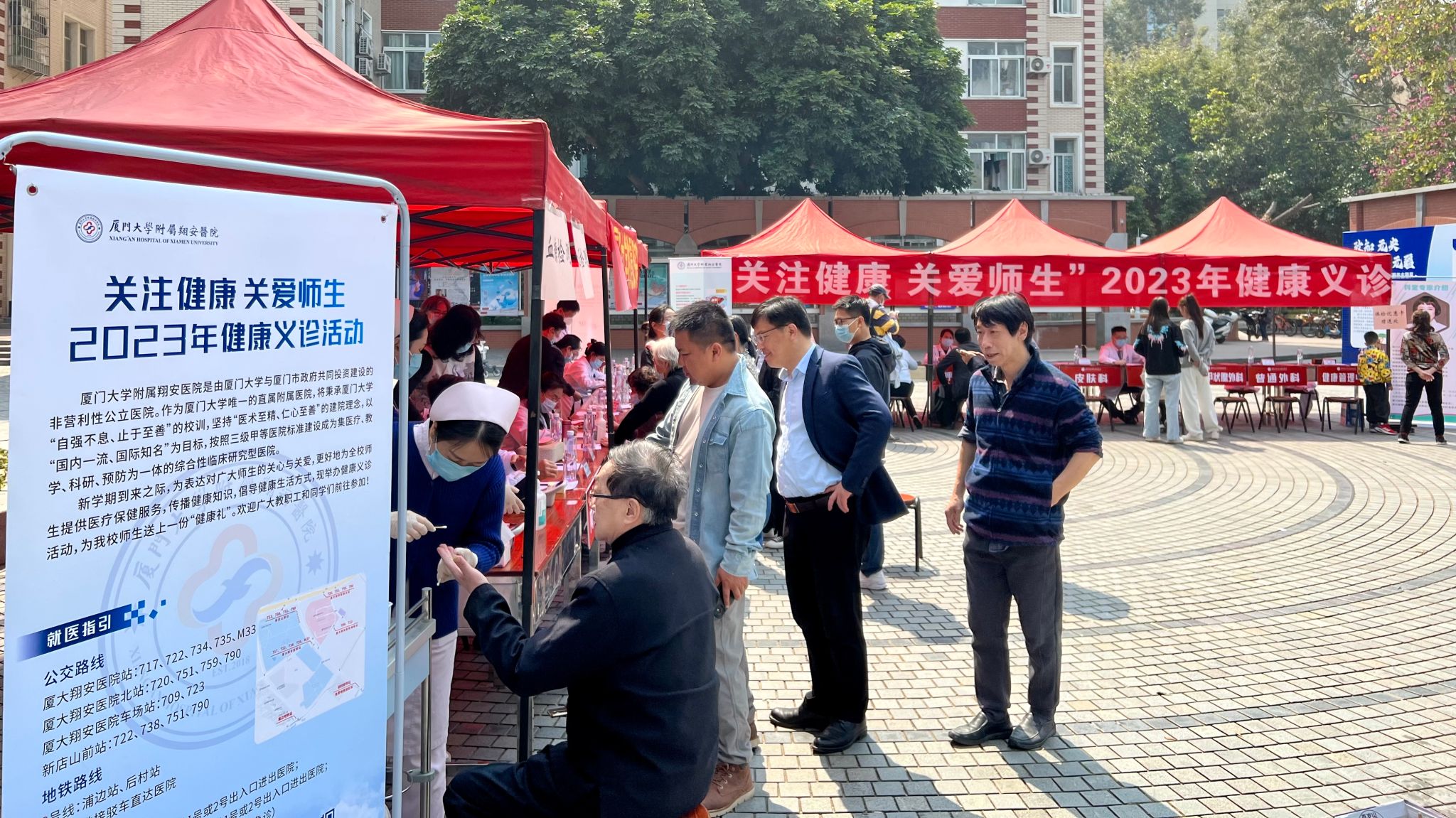 3月9日上午,由厦门大学工会、厦门大学附属翔安医院联合开展的 “关注健康 关爱师生” 厦门大学健康义诊活动在厦门大学思明校区三家村举行,为全校师生送上了一份来自直属附属医院的健康大礼。校党委常委、副校长、校工会主席邓朝晖现场关心慰问医务人员,校工会常务副主席叶鹏飞和校工会副主席茹晓燕陪同。