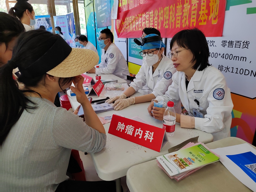 4月19日,我院在思明院区也举行了肿瘤防治义诊活动,由健康管理中心和肿瘤科等相关科室提供诊疗指导,宣传健康知识。