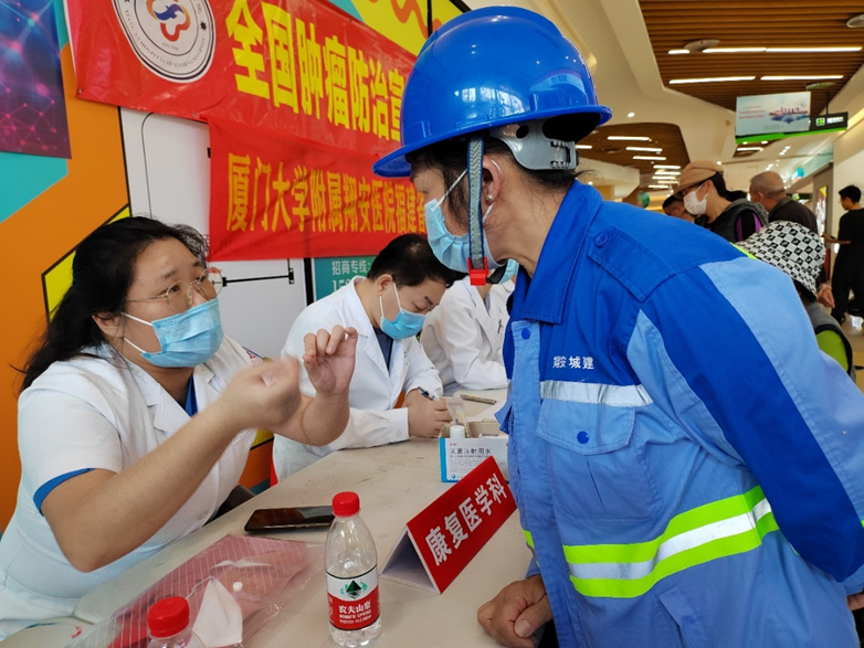 4月15日,我院联合翔安区疾控中心,组织肿瘤科、中医科、康复医学科、肝胆外科、乳腺甲状腺外科、耳鼻咽喉头颈外科、胸外科、感染肝病科及护理部到翔安区闽篮城市广场开展科普义诊活动。