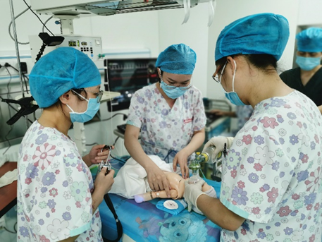 妇产科致力于提升母婴健康服务质量,围绕新生儿窒息复苏、孕产妇急救复苏、会阴缝合、羊水栓塞急救等实操技能定期开展培训和比赛活动,不断强化医护人员的应急抢救和团队协作能力,规范危重症孕产妇和新生儿救治技术操作流程,为保障母婴健康安全打下夯实基础。