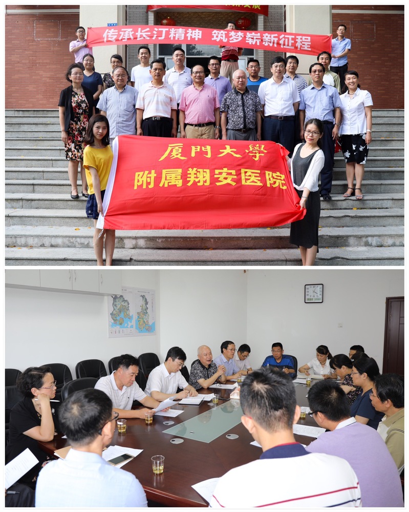 为庆祝建党97周年,落实厦门大学第十一次党代会精神,我院前往长汀县举办了“传承长汀精神,筑梦崭新征程”主题教育暨“厦门大学附属翔安医院帮扶汀州医院见面会”。学校医科建设与管理办公室组织协调了此次活动,医院领导高度重视,专门召开动员会,党委书记邵鹏飞嘱咐到:长汀之行是红色之行、感恩之行,既是对闽西地区开展医疗技术帮扶,也是扩大我院在闽、赣等区域影响力的战略举措。张国君院长等院领导与帮扶专家团队合影。