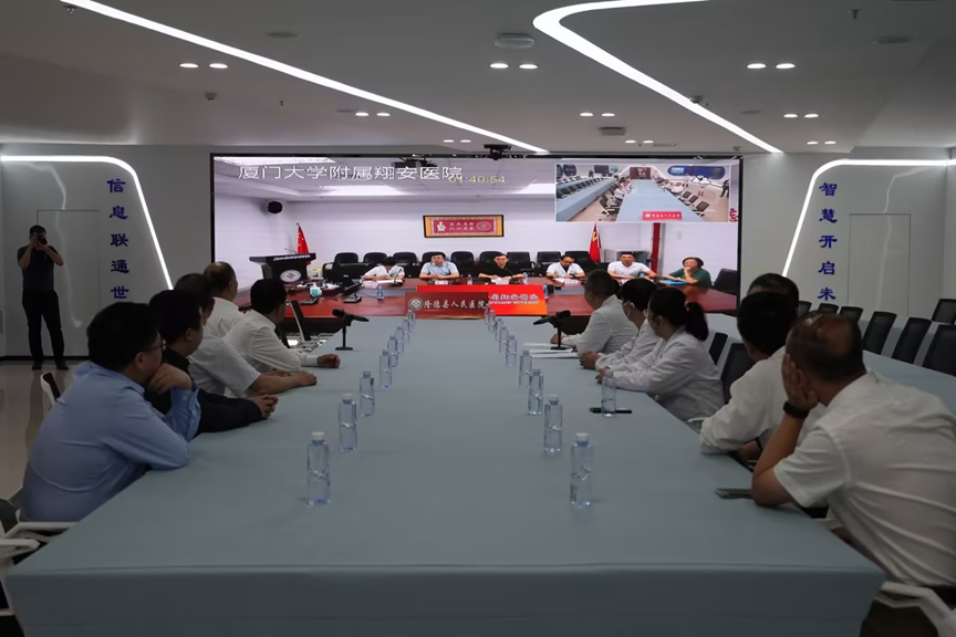 医疗队帮扶期间,正在宁夏回族自治区考察调研的厦门大学党委常务副书记林东伟一行前往隆德县人民医院看望慰问了援隆附属翔安医院医疗队队员,考察附属翔安医院—隆德县人民医院远程会诊平台,并了解医疗队手术开展情况。