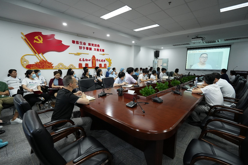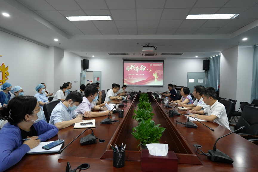 傅万里以《自我革命——“窑洞之问”的第二个答案》为题,从历史周期率问题谈起,总结了党的十八大以来全面从严治党的十年伟大变革,通过剖析医疗领域反腐现实案例,用反面典型警醒党员们引以为戒,深入领会党中央坚定不移正风肃纪反腐的决心,自觉践行《医疗机构工作人员廉洁从业九项准则》。