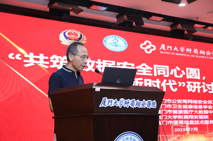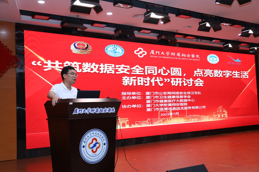 为深入贯彻党的二十大精神和落实国家《网络安全法》,增强医疗数据安全、网络安全意识,7月21日下午,由厦门市公安局网络安全保卫支队指导,厦门市卫生健康信息学会、厦门市健康医疗大数据中心主办,厦门大学附属翔安医院、厦门市医鹭信息技术服务有限公司承办的“共筑数据安全同心圆,点亮数字生活新时代”研讨会在我院学术报告厅举行。