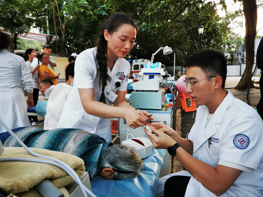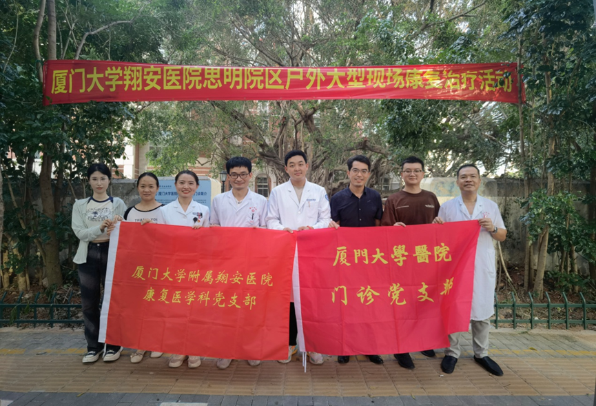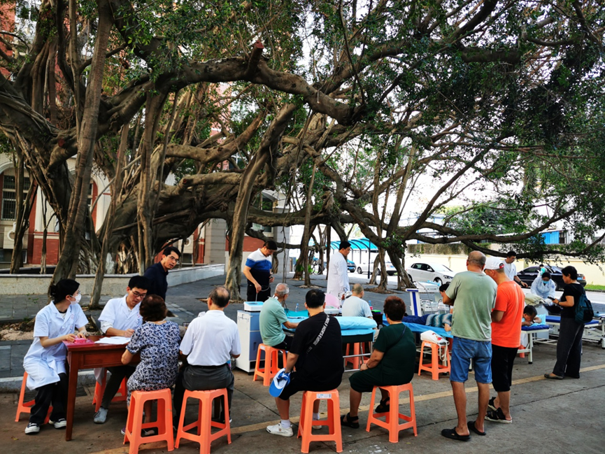 8月3日下午,我院康复医学科在思明院区内开展大型户外康复治疗体验活动(第一场)。张金龙副主任医师领衔康复医学科11位医护人员团队,为社区居民提供了中频脉冲电刺激、超声波治疗、超短波、红外线、磁疗、针灸、拔罐、肌内效贴、运动疗法、手法治疗等10个诊疗项目服务。活动受到社区群众热烈欢迎,吸引了80余人次参与康复治疗体验。