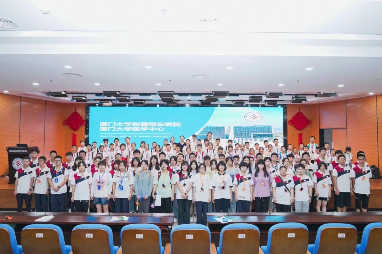8月10日上午,来自厦门海沧、宁德屏南的120名中小学生在我院综合楼报告厅集合,参加“尊重生命、救在身边”主题研学活动。