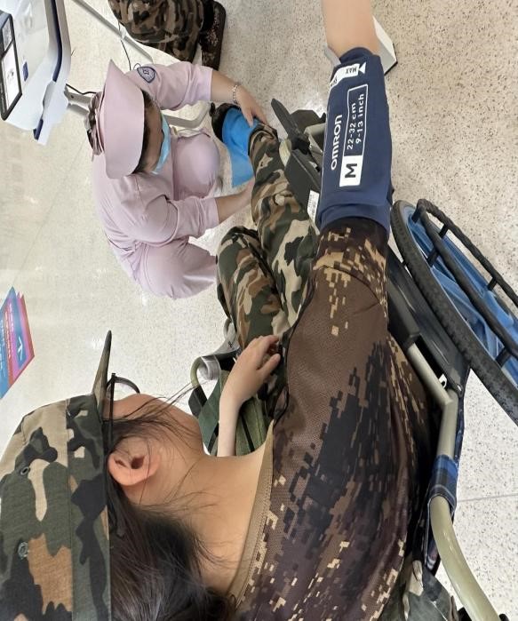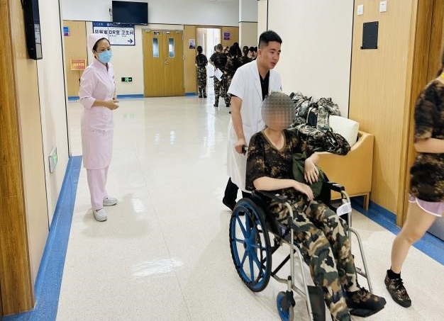 体检现场井然有序,健康管理中心在半天时间内高效完成了240余人的体检任务。有位新生不慎扭伤了脚踝,行动不便,健康管理中心医护人员全程陪护,悉心服务,帮助这位同学顺利完成了入学体检。