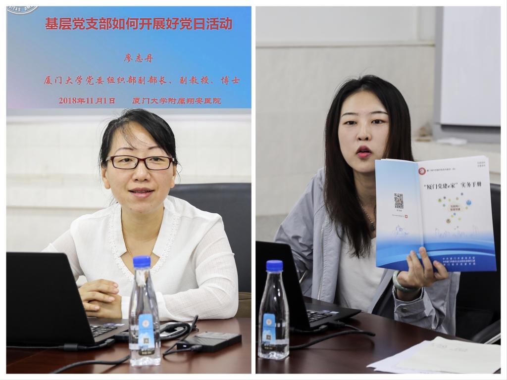 作为厦门大学新生力量——附属翔安医院,其年轻的党组织在学校党委和校组织部的正确领导和指导下,医院党建工作逐渐走上正规化、常态化。为进一步提升医院各党支部工作质量、提高支部委员的专业知识和业务能力,院党委邀请校组织部副部长廖志丹副教授和巩林老师来院开设题为《翔安医院如何开展好党日活动》和《厦门党建e家实务操作培训》专题讲座。医院各支部全体委员40余人参加学习。医院党委副书记史虞龙主持讲座。