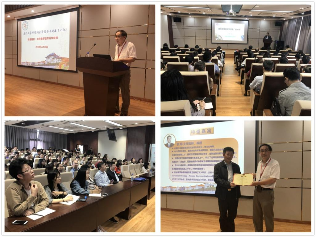 11月16日上午,应厦门大学附属翔安医院邀请,中国人民解放军总医院泌尿外科主任、国家杰出青年科学基金获得者张旭教授在厦门大学翔安校区成义楼报告厅作了题为“如何做好临床科学研究”的学术报告。此次报告会由我院泌尿外科、骨外科、烧伤整形科、消化内科、感染肝病科、内分泌科、麻醉科、放射医学科和护理部等多个科室的医护人员,以及厦门大学医学院和抗癌中心的师生近150余人参加了学术报告。本次报告由厦门大学副校长韩家淮院士主持。