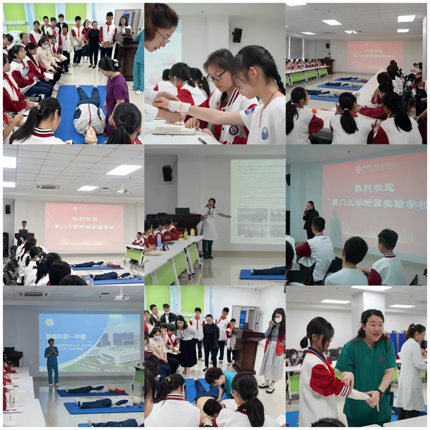 3月31日下午,由我院工会、国家临床教学培训示范中心、急诊医学科、护理部共同承办的“探索生命科学 守护生命健康”研学活动圆满完成。厦大附属翔安实验学校校长刘扬,健康副校长、我院眼科副主任医师卜敬华,我院工会副主席、护理部副主任张佳坡,国家临床教学培训示范中心副主任张莉莉参加启动仪式,来自厦大附属翔安实验学校的80余名师生参加活动。