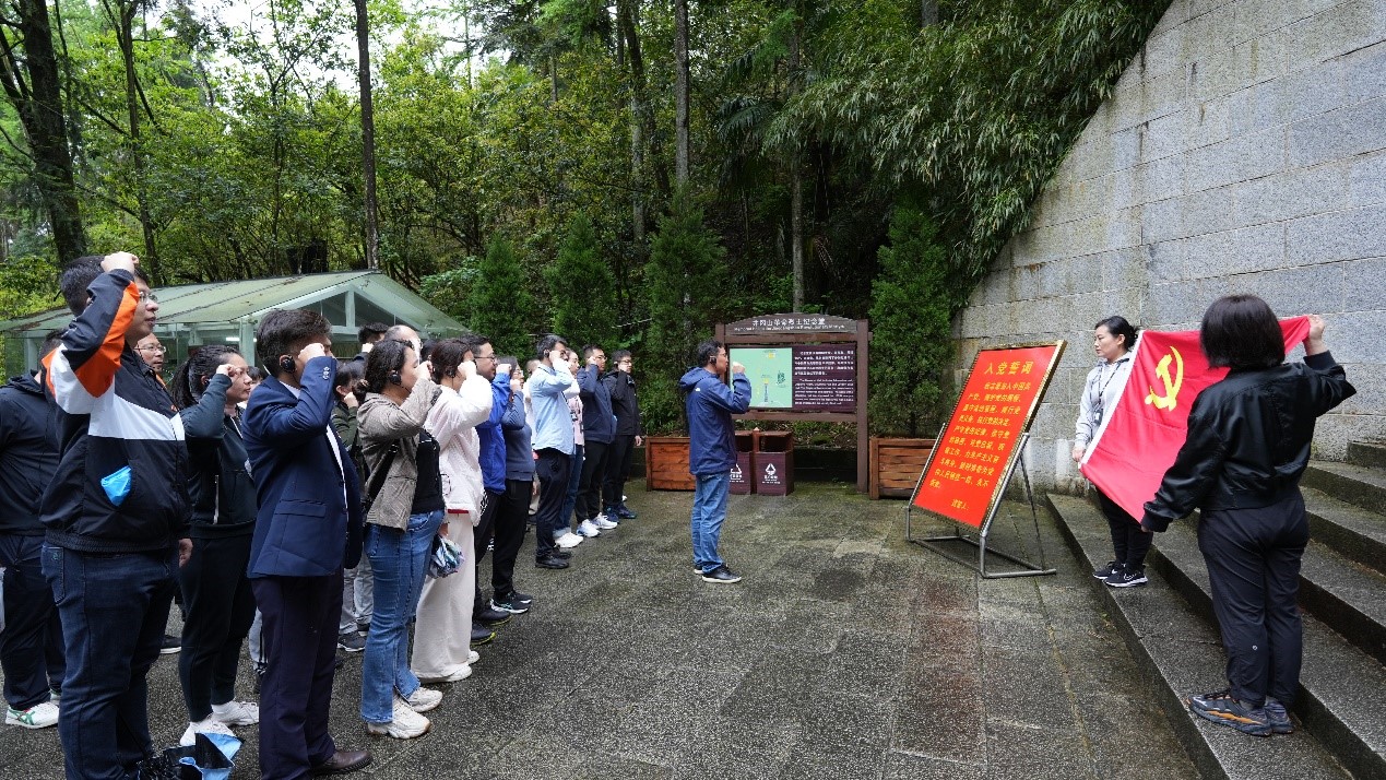 在井冈山革命烈士陵园,院党委书记左正宏带领党员们重温入党誓词,向先烈们敬献花圈、鞠躬默哀。
