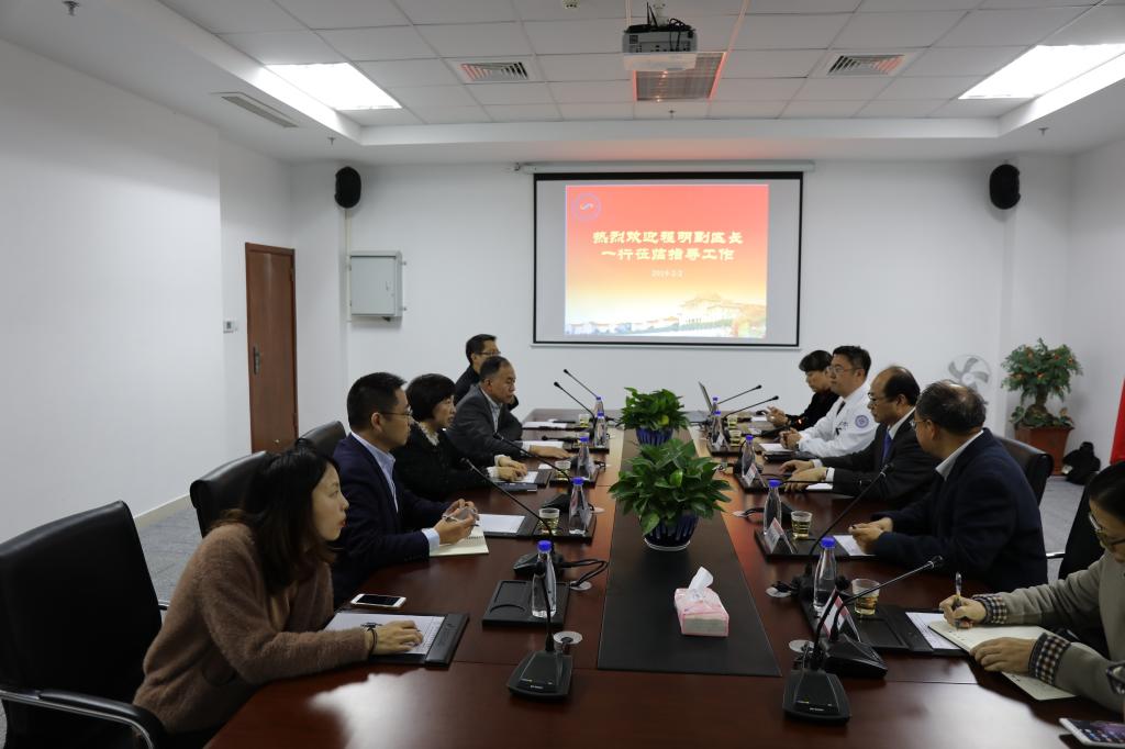 2月2日,厦门市翔安区副区长程明一行莅临我院调研座谈,了解我院开业前准备情况,以及讨论在健康医疗大数据领域的开发与应用事宜。我院执行院长张国君、院领导程继东和相关部门负责人陪同调研。程副区长视察了门诊楼、住院楼等医院建筑楼群。