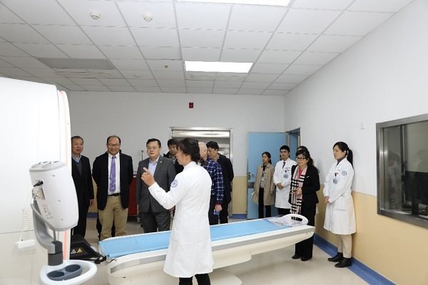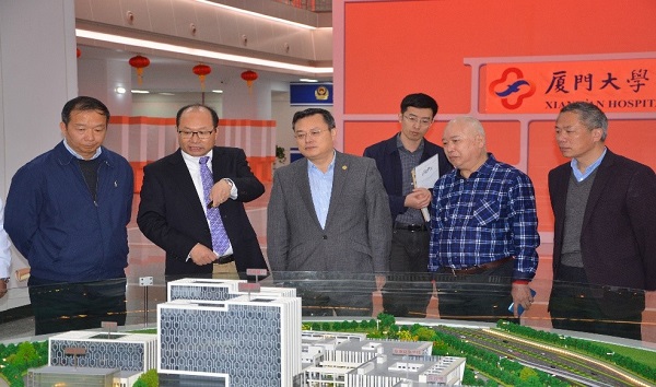 张校长参观了门诊楼、住院楼等建筑楼群,重点视察了双源CT等国内外先进设备设施,与乳甲外科、肿瘤内科、内分泌科等科室的负责人亲切交谈,询问了相关就诊情况和遇到的问题,带来了厦门大学党政领导浓浓的问候,同时勉励全院职工凝心聚力、接续奋斗、乘势而上,在厦门大学98周年校庆之际,迎来医院开业开门红。张院长在医院建筑沙盘前详细介绍了医院建设和未来发展规划。