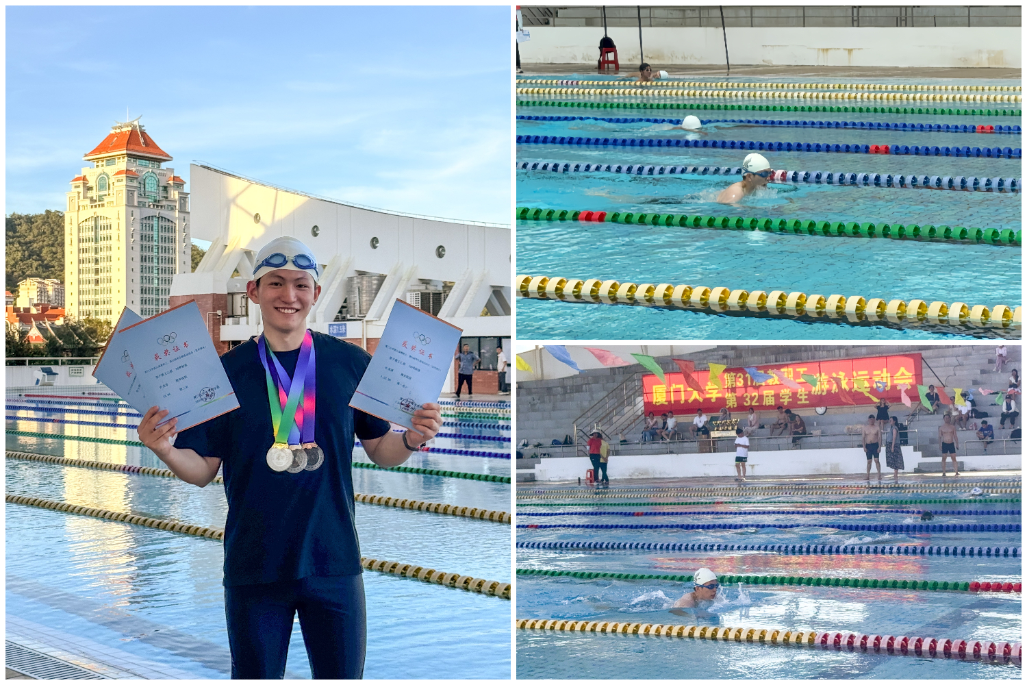 6月23日,厦门大学第31届教职工游泳运动会在思明校区王清明游泳馆火热举行,我院斩获男女教工组4×50米自由泳接力赛第三名和两个个人项目奖项。