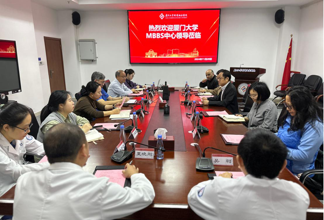 为深化院校合作交流,强化外籍学生实习管理及推进医学教育国际化,11月20日上午,厦门大学医学院副院长李炜、MBBS中心主任陈竞萌一行到我院走访交流,我院副院长卜梁、教学总监程继东、临床教师代表及相关工作人员出席MBBS质量认证相关教学工作讨论会。