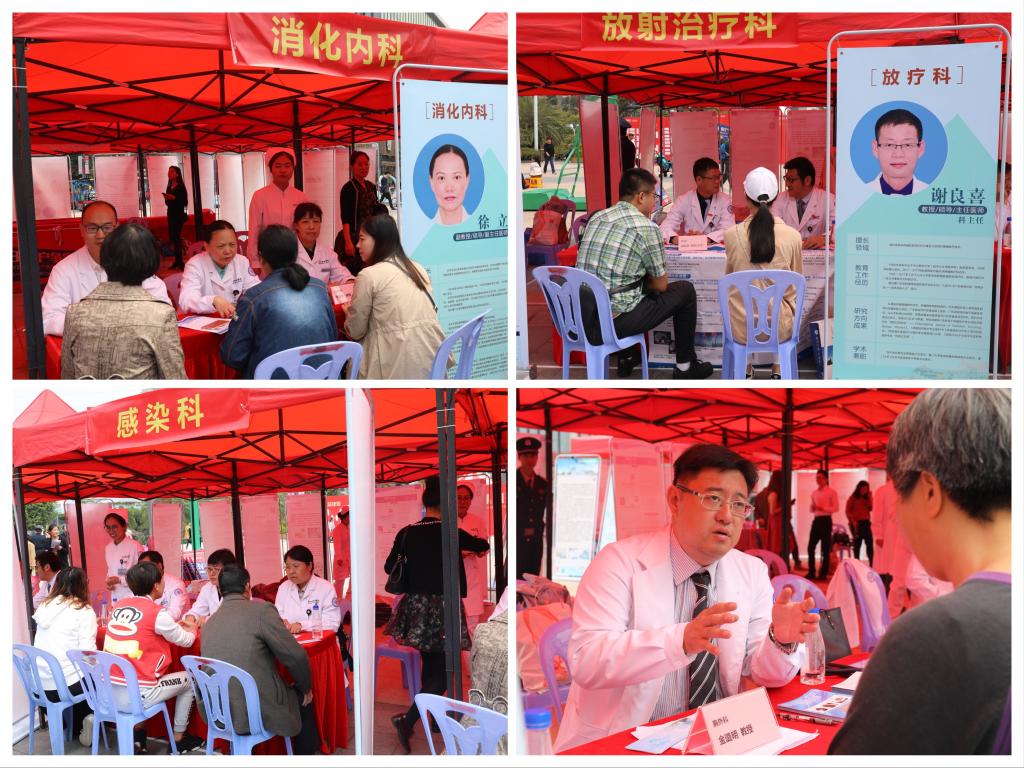启动仪式后,来自厦大附属翔安医院乳甲外科、泌尿外科、妇科、消化内科、肿瘤科、放疗科、中医科、感染科、骨科、康复医学科等多个临床科室专家及医护人员开展现场义诊,专家们与群众面对面交流,宣传肿瘤疾病预防与自我保健知识,开展健康咨询,深受群众的欢迎。