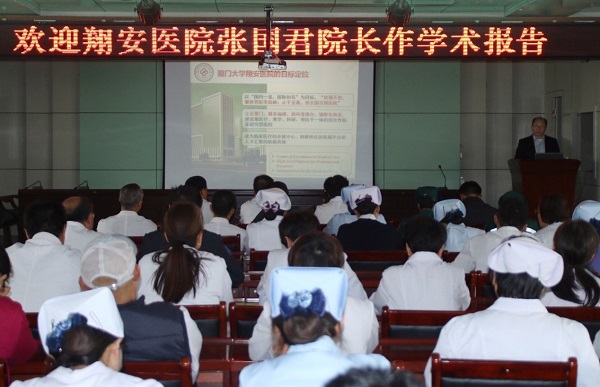 下午,张国君院长为隆德县人民医院中层以上干部进行了《厦门大学附属翔安医院发展规划和医院品牌建设》的精彩讲座。与会者对翔安医院在学科建设、人才团队、先进设备、现代化管理等方面取得的成绩表示赞叹,希望与翔安医院加强联系、密切沟通,迅速提高县人民医院现代医院管理能力。