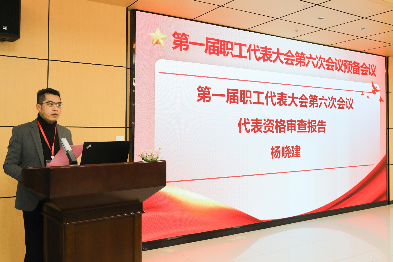 工会副主席杨晓建在厦门大学附属翔安医院第一届职工代表大会第六次会议预备会议中,作代表资格审查报告。