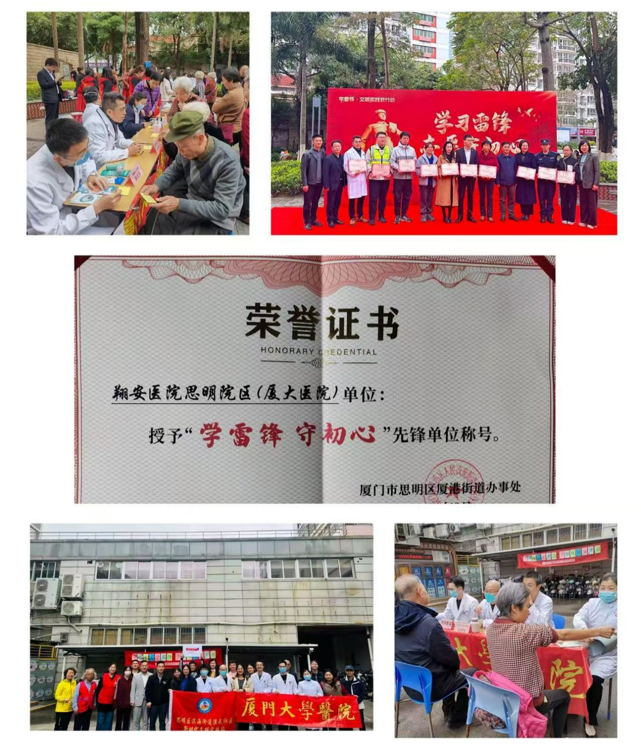 活动尾声,思明区厦港街道办事处为我院思明院区颁发了"学雷锋,守初心"先锋单位荣誉证书,感谢我院服务社会、将优质医疗资源下沉社区,用实际行动诠释雷锋精神的时代内涵!