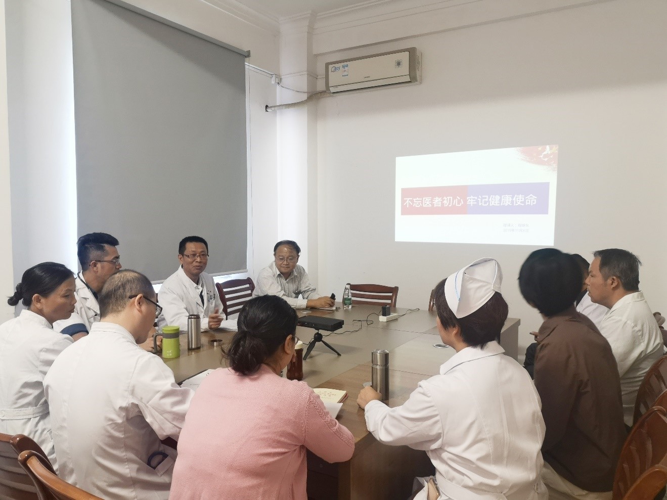 程副院长结合实际,向在座党员阐述了共产党员和基层医务工作者的初心和使命,并就如何践行“不忘医者初心,牢记健康使命”作了主题发言,要求大家立足岗位,精益求精,以勤勉严谨的工作作风,除人类之病痛,助健康之完美,在维护医术的圣洁和荣誉的同时,不断朝着“为中国人民谋幸福”的初心和“为中华民族谋复兴”的使命奋勇前行。林维强书记鼓励支部党员以实际行动践行希波克拉底誓言,为医疗事业贡献力量。