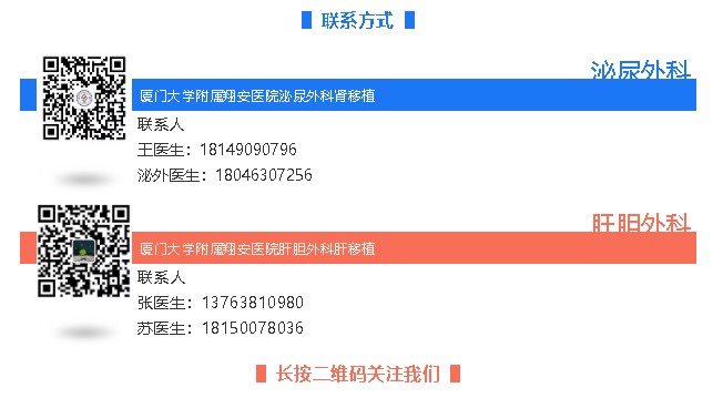 目前,厦大翔安医院肝、肾移植配型登记已全面开展,有需求的患者及家属请尽快前往医院泌尿外科及肝胆外科完成配型、登记。