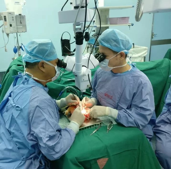 手术医生按顺序依次进行仔细的清创,复位粉碎的骨折并应用钢针内固定,修复断裂的肌腱,在显微镜下根据条件按比例依次修剪吻合动脉、静脉及神经。由于患指为挤压伤,软组织碾损严重,每一个过程都异常困难,周大果主任医师凭借精湛的技术及极大的耐心成功完成了再植手术。
