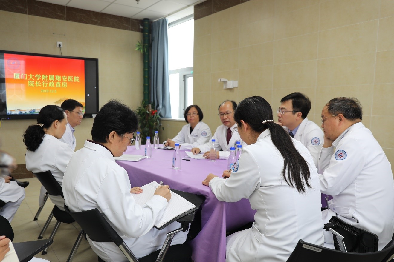 执行院长张国君教授本着“一切服务于临床”的宗旨,组织各行政职能部门负责人现场办公,对医疗工作中存在的问题、患者需求等方面工作进行详细了解并给予意见;对存在的隐患或有待完善的环节充分沟通,就地安排解决;对科室发展面临的问题和困难提出解决方案,并责成相关部门限期解决。