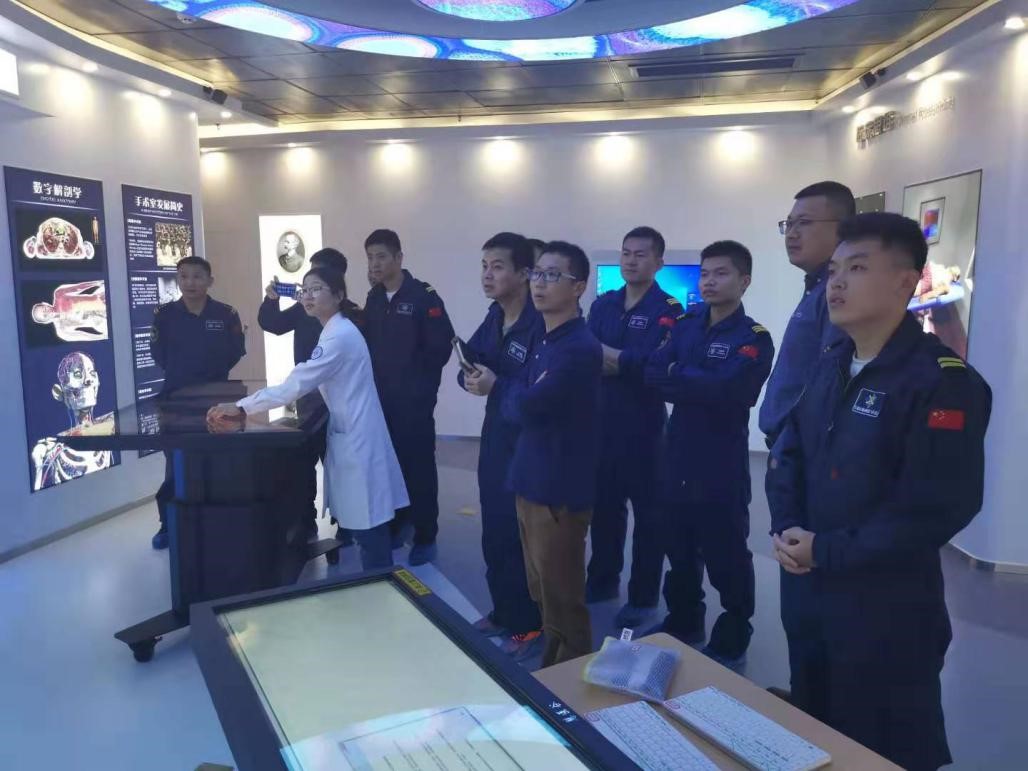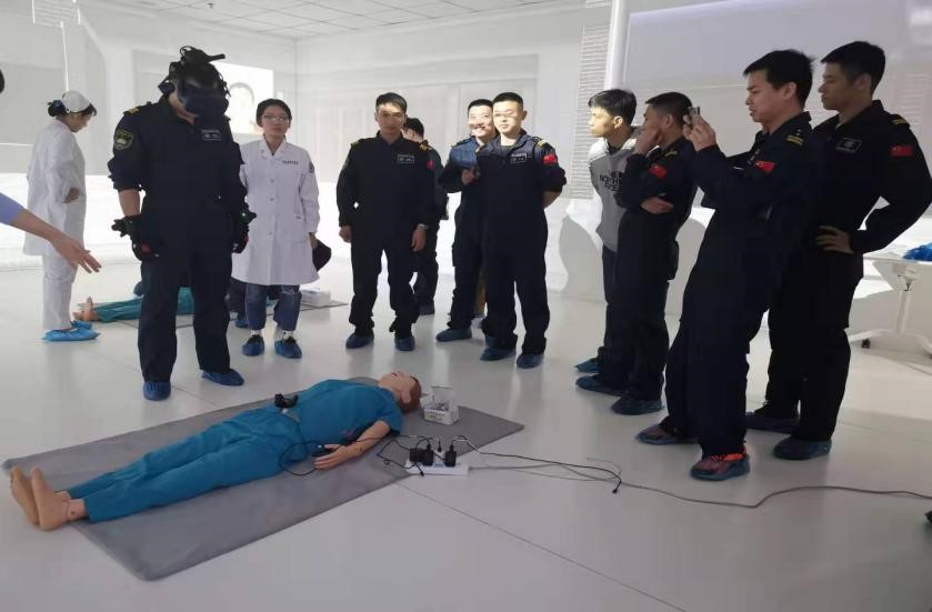 本次培训活动采用理论授课与模拟实践相结合的方式进行,从伤员发病原理、处置措施、自我保护等方面进行生动讲解。我院急诊科医生作了题为《硫化氢中毒的处理》、《海水浸泡伤处理》、《突发意识障碍急救》、《骨折的判别与急救》的讲座;结合急诊救护案例,在我院临床模拟教学中心模拟演示了心肺复苏、创伤包扎、搬移伤者等紧急救护技能,并根据动作要领和施救技巧对东二飞队员进行一对一交流指导;组织东二飞队员参观我院生命科学馆,通过展示3D动画和病理标本,普及生命起源、人体解剖等基础卫生知识。