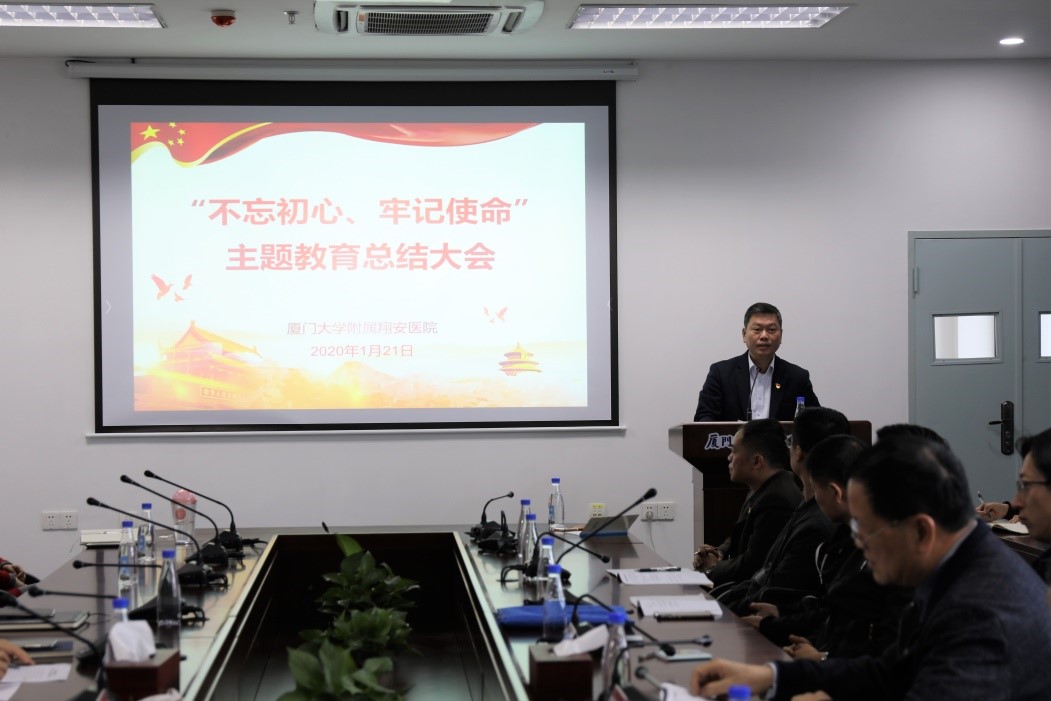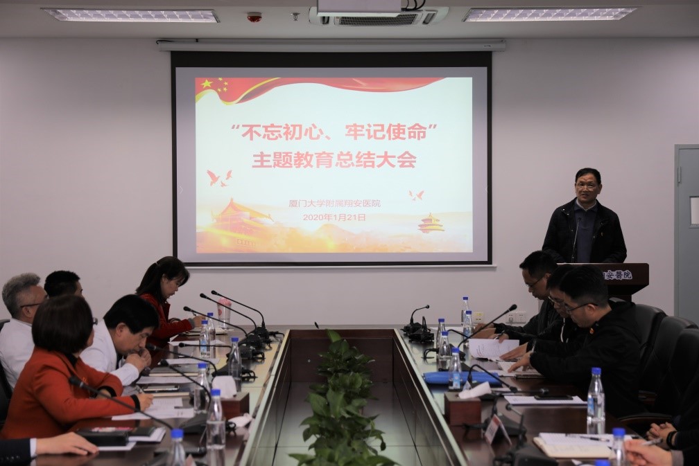 1月21日下午,厦门大学附属翔安医院“不忘初心、牢记使命”主题教育总结大会在综合楼会议室召开。厦门大学主题教育第七巡回指导组组长洪永强出席并讲话。医院党委书记吴立武作总结讲话。医院党委副书记、纪委书记傅万里主持会议。第七巡回指导组副组长高斌,医院领导班子成员、职工党员代表、党外人士和群众代表参加了会议。会上,医院党委还组织与会职工对医院主题教育进行测评,并征求大家对主题教育及专项整治工作的意见建议。