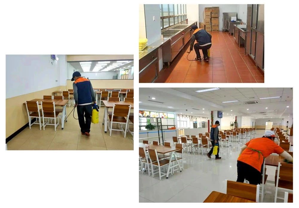 雄兵破敌,一骑当千。在消毒方面,一线工作人员面临最脏的工作环境,承担全院环境消杀及垃圾处理工作。在充分学习各类国家制定的消毒技术规范及防护要求基础上,培训一线作业工人正确穿戴防护用具及规范执行消毒技术方案。从工作布置会议开始,重点区域实现一日多消,普通区域实现无死角消毒,室外区域加强虫害消杀,设置“废弃口罩回收专用”垃圾箱,实现规范分类转运及处置,力创一个安全洁净的医疗环境。