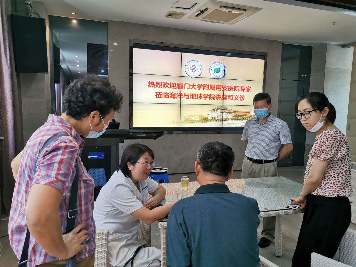海洋与地球学院郑碧娇副书记主持这次活动,她说,专家的到来,让大家真切感受到附属翔安医院对广大师生的高度重视和关怀。附属翔安医院吴立武书记利用会议间隙来到现场,勉励医务工作者继续为厦门大学广大师生提供更好的医疗服务。