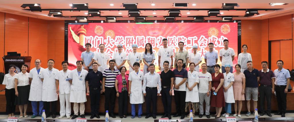 7月29日,厦门大学附属翔安医院召开工会成立大会暨第一次会员代表大会,选举产生工会第一届委员会。厦门大学党委常委、副校长邓朝晖、校工会常务副主席叶鹏飞、副主席余炳建到会指导,院党委吴立武书记、程继东副院长、黄明总会计师及工会会员代表140人参加会议。会议由傅万里副书记主持。