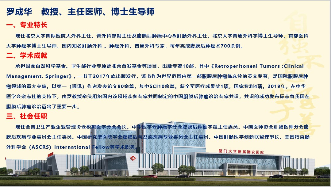 肝胆外科主任李文岗教授感谢罗成华教授对厦大翔安医院发展的支持,表示我院肝胆外科在腹膜后肿瘤的临床和研究上已经做了不少工作,希望以后能与罗教授展开更深入的合作。