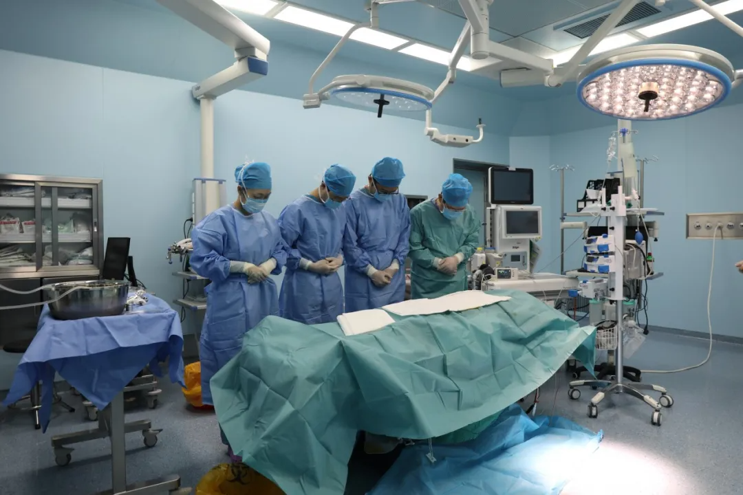 11月4日上午9:30,厦门大学附属翔安医院手术室里,医护人员及人体器官捐献协调员对李先生遗体鞠躬默哀致敬,随即顺利完成器官获取手术。