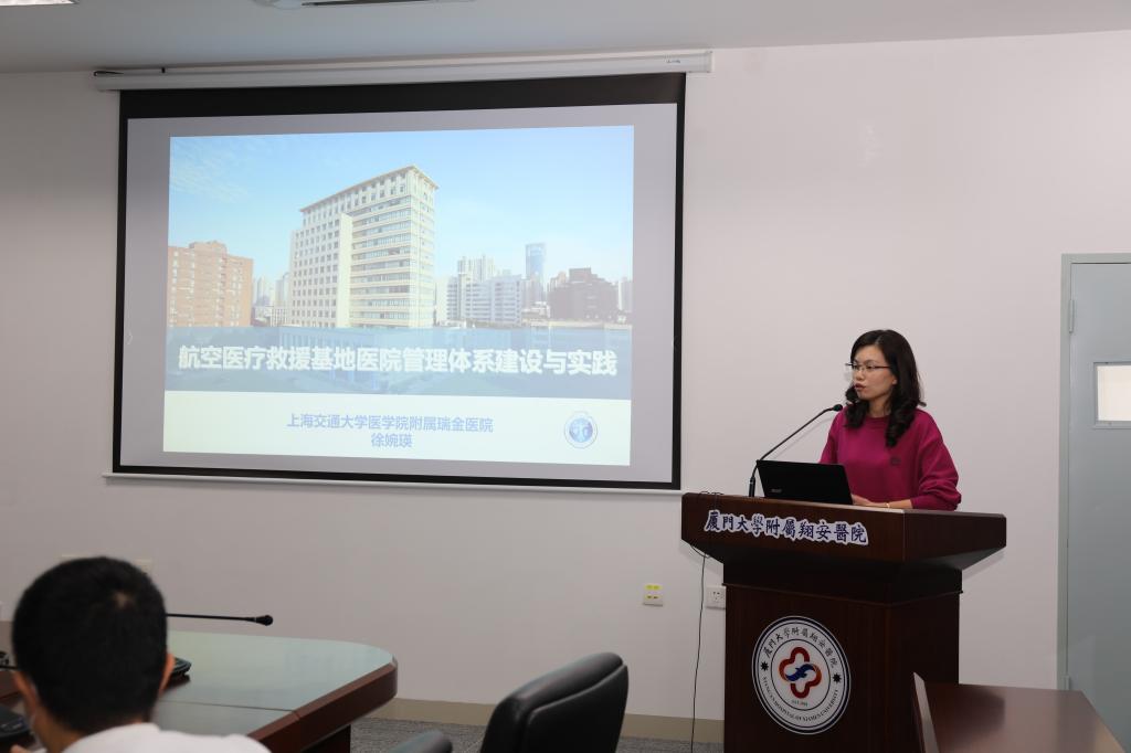 近日,上海交通大学医学院附属瑞金医院徐婉瑛副研究员应邀为我院管理人员及相关专业医护人员带来题为“航空医疗救援基地医院管理体系建设与实践”和“基于院科两级病历质控体系建设的医疗质量管理探索与实践”的学术讲座。翔安医院执行院长张国君、副院长邵晨、副院长程继东与会。