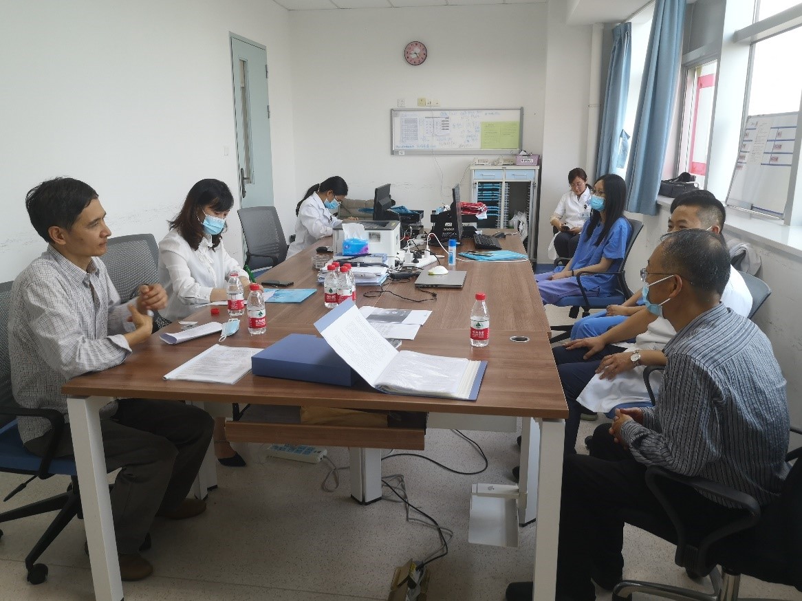 质控工作小组在内分泌科现场查阅了质控相关资料、医护人员资质,并对血糖测量操作进行了现场考核,胡竹萌医生以标准的操作动作,流畅的对答获得工作小组成员的一致认可。