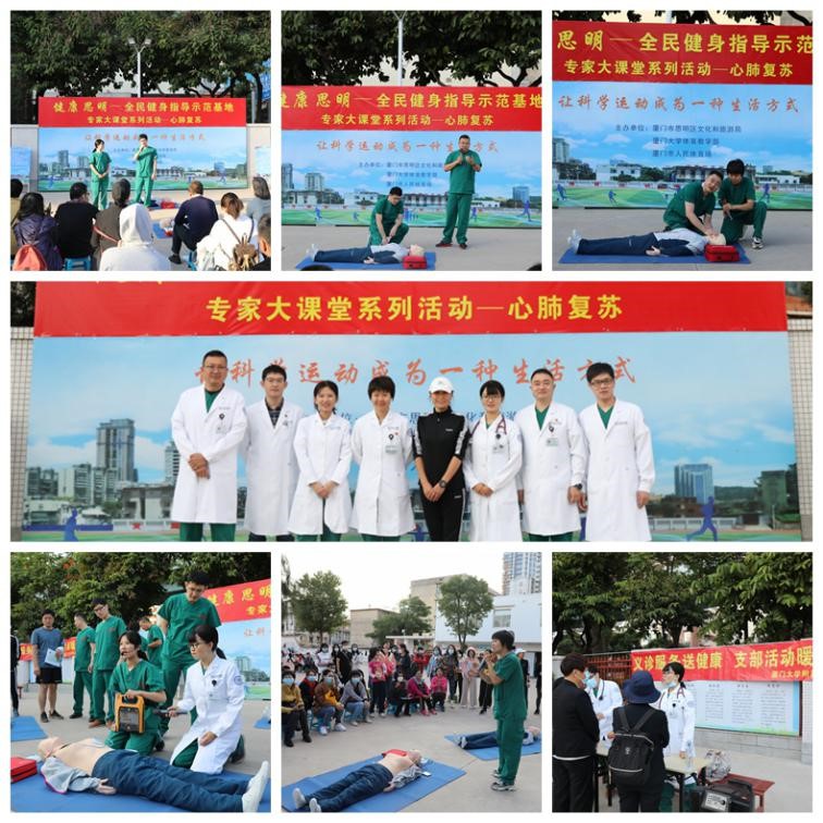 秋冬季节是心血管呼吸系统疾病的高发期,为增强广大市民面对危及生命健康紧急情况的应急处置能力,12月5日下午,厦门市思明区文化和旅游局携手厦门大学体育教学部党委、厦门大学附属翔安医院党委在“健康思明——全民健身指导示范基地”联合打造“专家大课堂”系列活动之心肺复苏。基地负责人、厦大体育教学部体操党支部书记赵秋爽老师,厦大翔安医院国家临床教学培训示范中心、机关第三支部党员张莉莉老师及各个党支部、临床科室的医务人员组织开展了一场别开生面的急救知识普及活动。活动开始前就接到了50余名市民的报名,活动现场更是人山人海,气氛热烈。