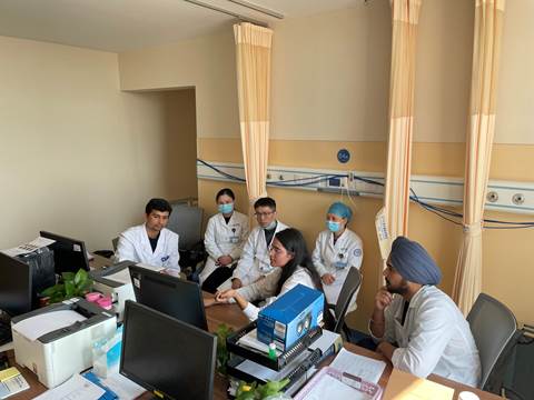 2020年1月5日,消化内科迎来了第一批来自印度的3名厦大临床医学MBBS留学生,他们将在消化内科进行为期2周的临床实习。徐立副主任医师热情地接待了他们,并用流利的英语向他们简单介绍了消化内科病房的环境、科室常见疾病以及消化内镜中心的特色。