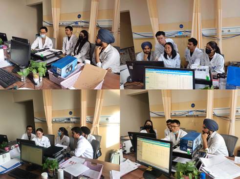 实习过程中,徐主任在每天上午的日常查房中都会根据在院病人的病情特点,进行患者床旁的实时英文介绍和讲解。留学生们也主动学习,认真做笔记,查房后他们会与管床医生对临床病例中遇到的疑惑进行讨论。每天下午是专题英文讲座,8位住院医生分别选择消化内科8种常见疾病,从病因、病理、临床表现、鉴别诊断及治疗等方面用英文进行系统讲解。