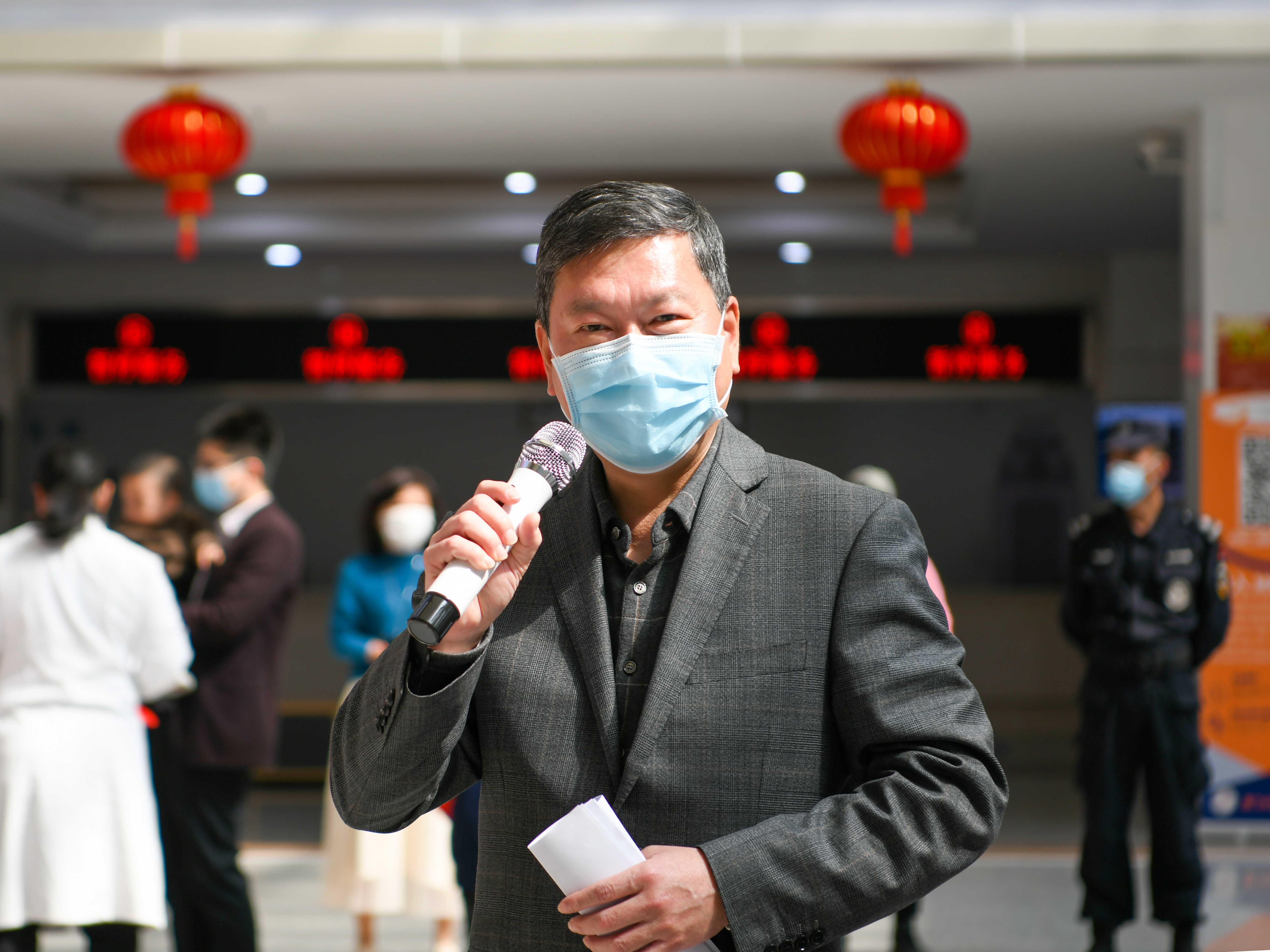 2月8日中午,厦门大学附属翔安医院在门诊楼大厅开展了以“迎春纳福,共迎百年校庆”为主题的送春联和猜灯谜活动。为落实常态化疫情防控总体要求,活动以分时段控流量的方式举行。院党委书记吴立武、院工会主席付丽娟与全院职工总计200余人参与了此次活动。活动由工会副主席邓斌主持。