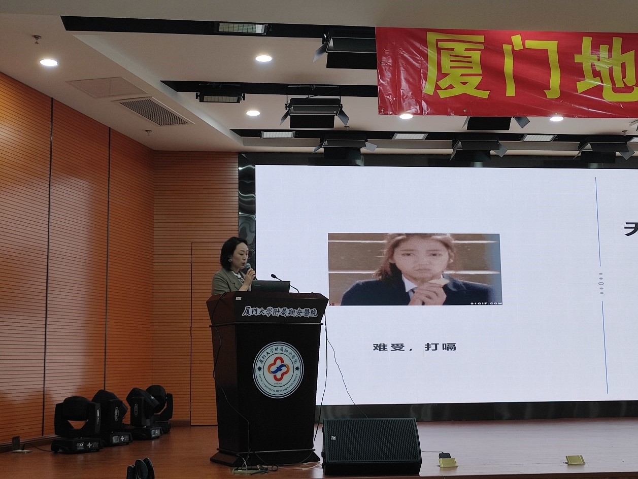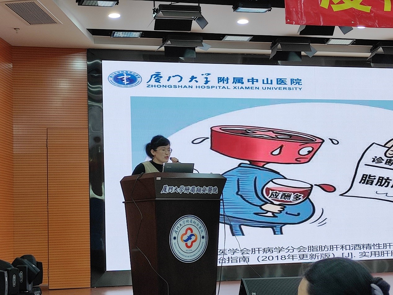 厦门大学附属中山医院林玉芬主管护师以生动活泼的主题“燃烧卡路里、消灭脂肪肝”,讲述了运动对于防治脂肪肝的重要性。