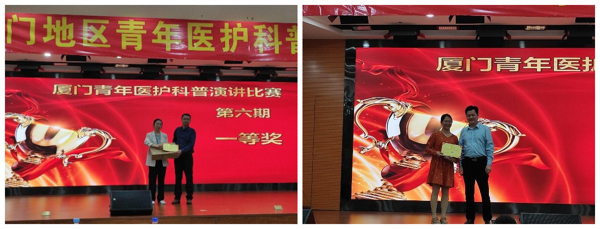 在解读肿瘤标志物升高的科普主题中,厦门大学附属中山医院熊欢护师获得一等奖,厦门医学院附属第二医院江月翠主治医师获得二等奖。