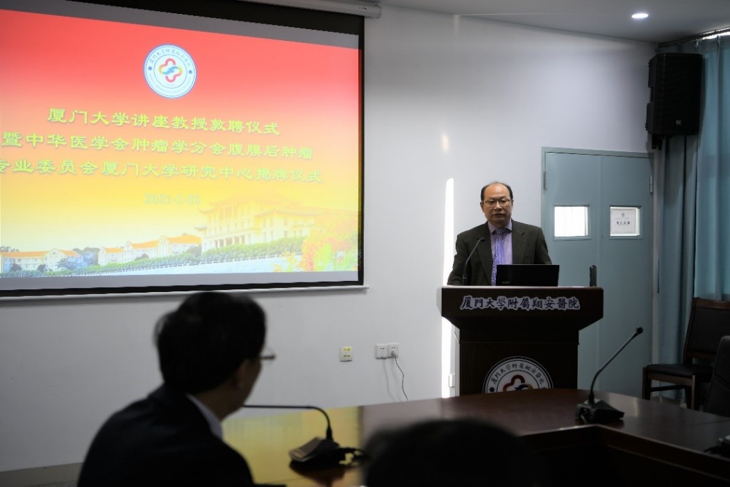 揭牌仪式上,吴喜平副处长首先致辞,他表示相信附属翔安医院会以中华医学会肿瘤学分会腹膜后肿瘤专业委员会厦门大学研究中心落地医院为契机,加大人才培养和跨学科团队建设,不断提升腹膜后肿瘤诊治和科研能力,填补闽西南地区空白,护佑生命健康,造福一方百姓。