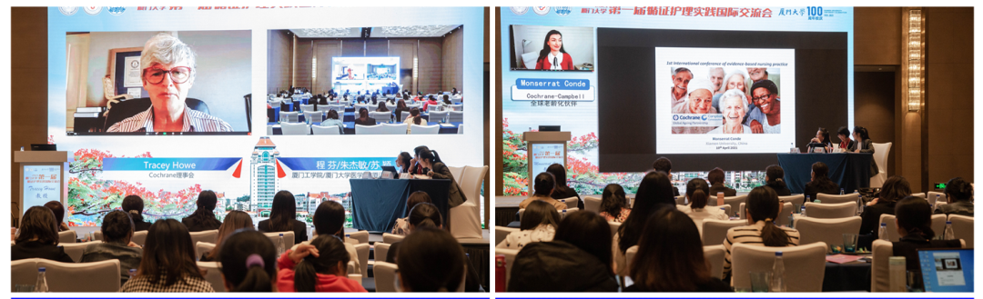 Tracey Howe介绍了Cochrane中心的使命是通过制作高质量和相关的且可获得的系统评价和其他研究证据的综合,来实现循证健康决策,Monserrat Conde介绍了全球老龄化背景及如何为全球老龄化搭建和提供一个知识、证据和观点交流的全球性平台,并向我院发出邀请,全力支持建立厦门大学附属翔安医院循证老年照护中心。