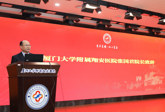 2021年4月17日,厦门大学附属翔安医院与乡村医疗分级诊疗研讨会暨福建省乡村医疗服务协会厦门服务中心成立大会在医院综合楼学术报告厅举行。厦门大学医学与生命科学学部主任、医学院院长韩家淮院士,厦门市卫生健康委员会党组成员林刚,厦门市卫生健康委员会基层卫生健康处处长陈粮,厦大翔安医院执行院长张国君,福建省乡村医疗服务协会会长谢瑞生,厦门市社会医疗机构协会会长邱瑞武等厦大翔安医院临床科室的专家教授、医护人员以及来自福建省约300余名乡村医生参会。会议由厦大翔安医院副院长程继东主持。